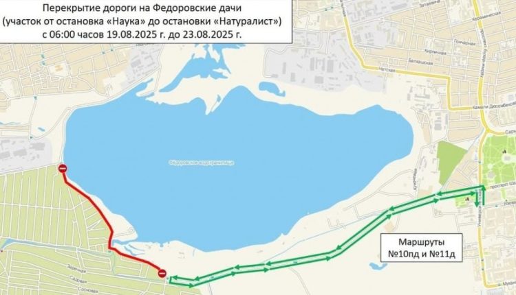 В связи с проведением работ по среднему ремонту автомобильной дороги в направлении к Фёдоровским дачам 19 августа будет временно перекрыт участок автодороги от остановки «Наука» до остановки «Натуралист», сообщает корреспондент.