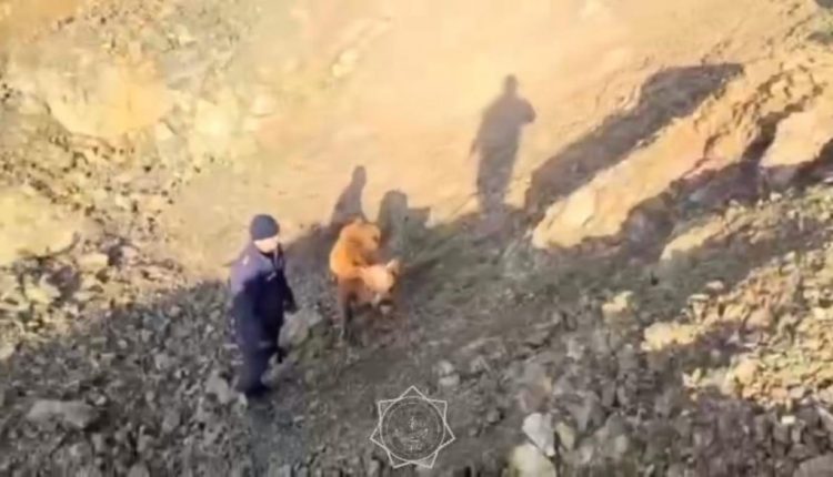 Девушка, увидев эту картину, сразу вызвала спасателей. Прибывшие на место сотрудники ДЧС обнаружили животное в карьере на глубине около четырех метров. С помощью спасательных веревок теленка подняли наверх и передали местным жителям.