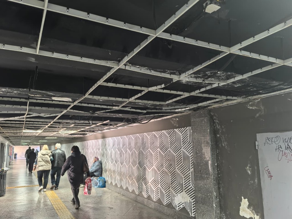В какой-то момент ремонт в подземном переходе на ЦУМе вообще перестал подавать надежды, и если раньше панели с потолка отрывались лишь локально, то в сентябре потолок стал почти целиком «дырявым». Тогда власти подали иск в суд на подрядчика, чтобы восстановить объект в рамках гарантийных обязательств. Но пока суды идут, панели все же демонтировали.